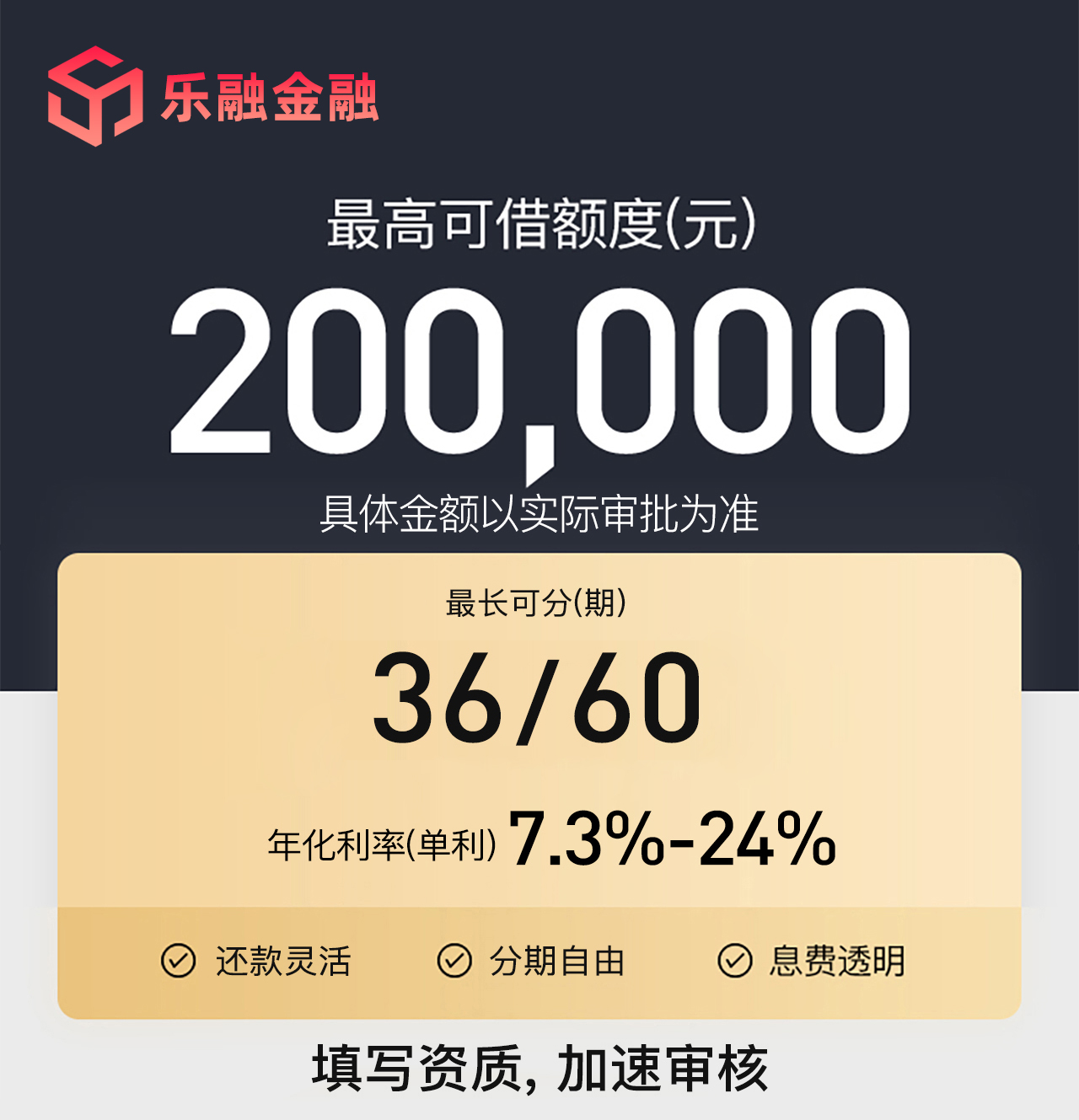 贷款额度、放款时间等以实际审批为准